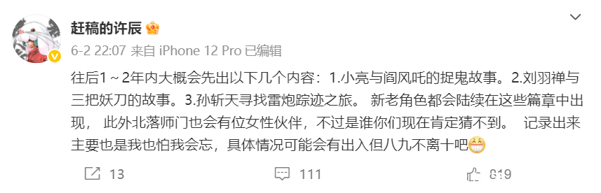 许辰在网上已经公布未来两年的更新计划,一共有三个大方向,一个小方向。主要包括曹玄亮、孙斩天、刘羽禅以及北落师门未来的发展方向。那么具体是如何?